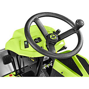 Елементи керування зручні та інтуїтивні. Важіль руху дозволяє оператору вибрати точну швидкість. При натисканні на педаль гальма задня вісь гальмується, а важіль автоматично повертається у позицію зупинки. Завдяки повному приводу оператор може зупинитися на схилі та увімкнути задній хід у повній безпеці.