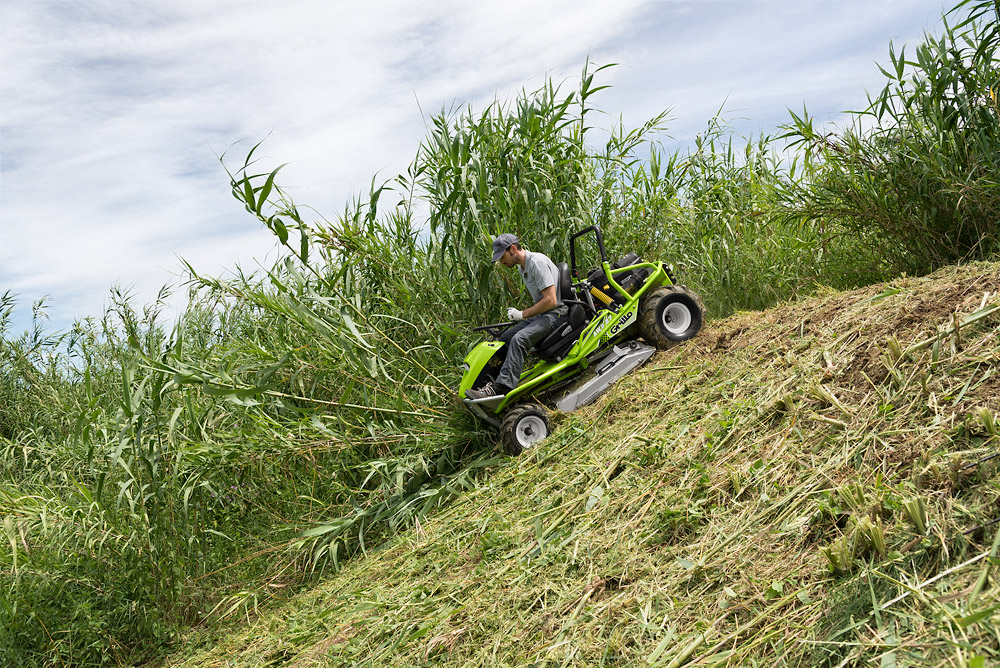 Різальна дека з одним обертовим ножем має робочу ширину 98 cm. Висота зрізу регулюється від 3.5 cm до 13.5 cm за допомогою плавного важеля — безступінчасте регулювання. Ножі вмикаються електричним перемикачем, а електромагнітне зчеплення оснащене гальмом ножа. Різальний механізм постійно утримується паралельно до землі, забезпечуючи найкращу якість зрізу.