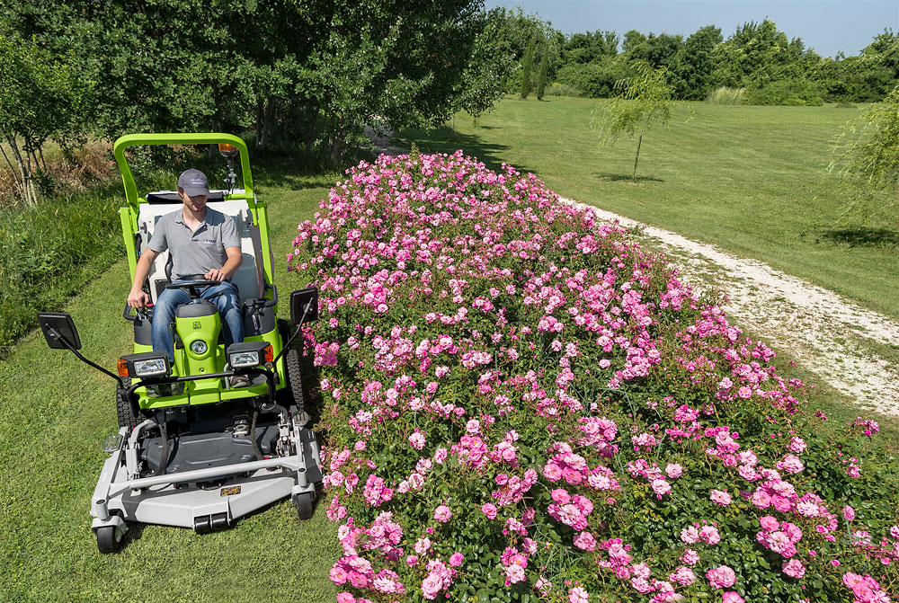 Інноваційна система постійного повного приводу 4WD через гідравлічний диференціал дозволяє машині працювати з максимальним зчепленням без пробуксовування в будь-яких умовах, не пошкоджуючи газон навіть при максимальному кутку повороту. Стабільність на схилах забезпечується продуманим розподілом ваги та блокуванням диференціала з автоматичним або ручним управлінням. Задня вісь є нахильною, що дозволяє зберігати повний привід навіть при скошуванні нерівних ділянок. Садовий протектор та ширина шин мінімізують пошкодження газону, навіть коли травозбирач завантажений.