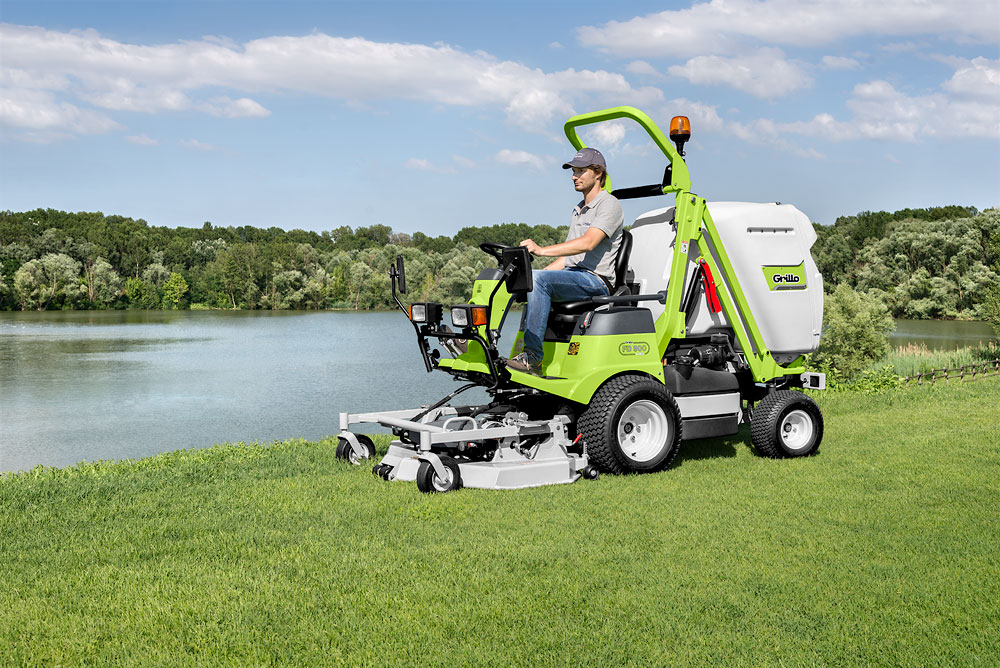 Grillo FD 900 — це гідростатична фронтальна косарка з постійним повним приводом на чотири колеса, що зберігається навіть при мінімальному радіусі повороту. Машина оснащена фронтальною ріжучою декою шириною 126 cm та травозбирачем із підвищеним розвантаженням на висоті 195 cm та навісом 30 cm. Малий радіус повороту 37 cm та компактні розміри забезпечують маневреність і стабільність навіть на схилах. Завдяки своїй продуктивності та функціональності, ця косарка ідеально підходить для обслуговування великих територій, садів та парків із рясними насадженнями.