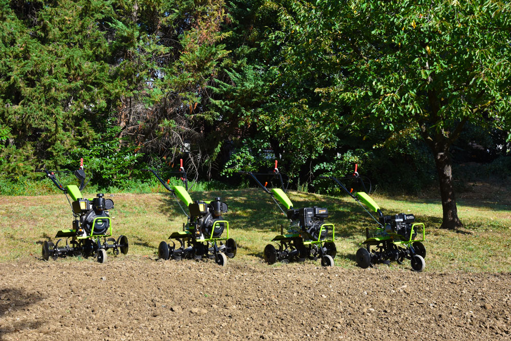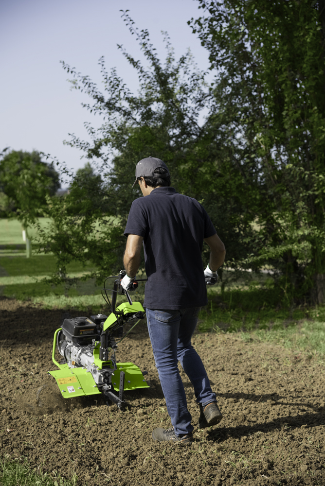 Grillo HR75 PRO — це професійний культиватор з механічною трансмісією в масляній ванні та 6-зірковою фрезою діаметром 32 cm, призначений для інтенсивного використання на будь-яких ґрунтах. Надзвичайно маневрений у вузьких просторах завдяки компактній конструкції та точному балансуванню.
