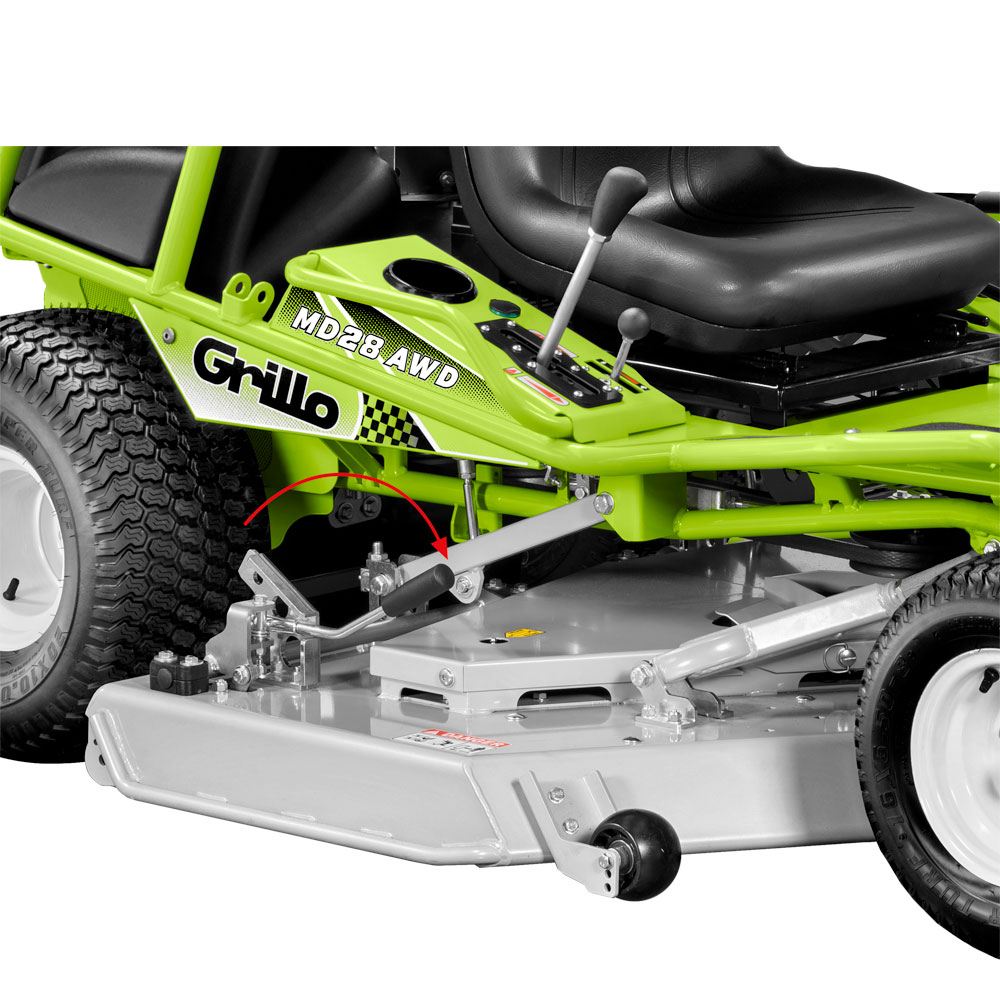 Grillo MD 28 AWD — це найпотужніша в своєму класі повнопривідна гідростатична райдер-газонокосарка з декою 125 cm та подвійною функцією косіння. Обладнана важелем Quick Shift для перемикання безпосередньо з місця водія між мульчуванням та заднім викидом без зупинки та зміни ножів. Постійний привід на 4 колеса забезпечує роботу на крутих схилах та складному рельєфі.