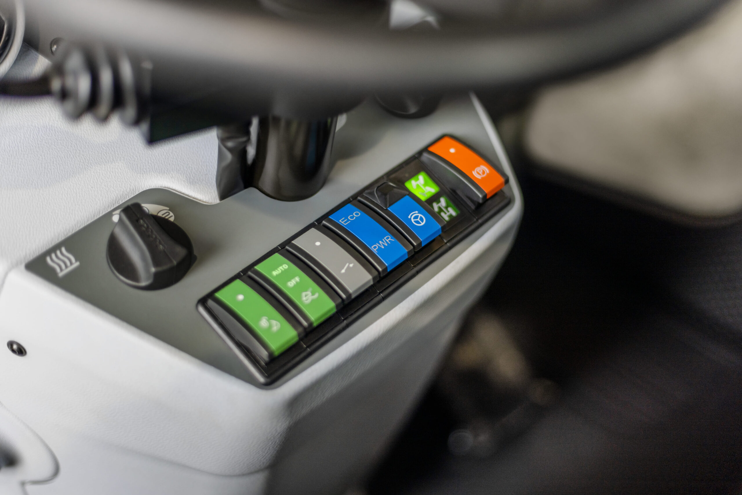– Перекидні вимикачі з кольоровим маркуванням для управлення функціями гідравліки, електрики, руху та забезпеченням безпеки