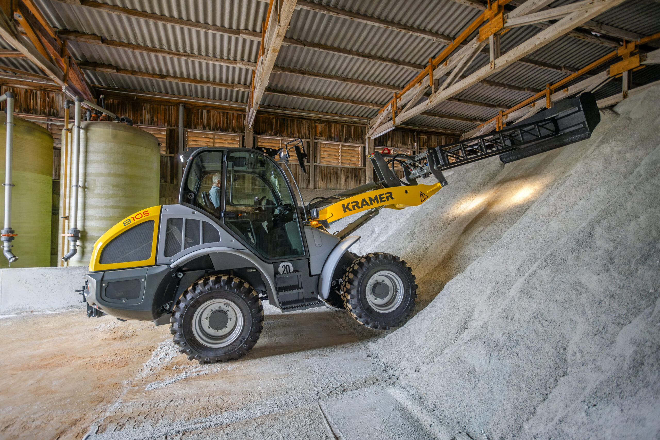 Фронтальний навантажувач 8105 від компанії Kramer – це модель 8-ї преміум-серії, що оснащена перевіреною цільною рамою Kramer. Машина має комфортну кабіну з ергономічно розташованими елементами управління. Навантажувач 8105 вражає видатним різноманіттям опціонального оснащення та оптимальними розмірами, що дозволяють в будь-якому застосуванні досягнути максимальної ефективності в своєму класі потужності.